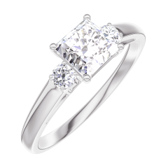 Anello Oro bianco 18 carati - Diamante Principessa 0.5 Carati - Pietre laterali Diamante