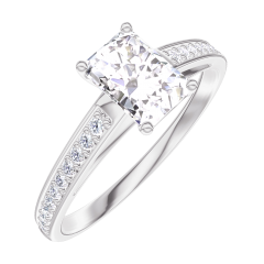 Anello Oro bianco 9 carati - Diamante Rettangolo 0.5 Carati - Incastonatura Diamante