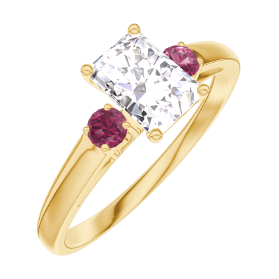 « L'ATELIER » Nº162642Anello Oro giallo 9 carati - Diamante Rettangolo 0.5 Carati - Pietre laterali Rubino