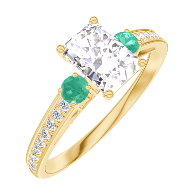 « L'ATELIER » N. 162686Anello Oro giallo 9 carati - Diamante Rettangolo 0.5 Carati - Pietre laterali Smeraldo - Incastonatura Diamante