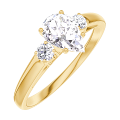 Anello Oro giallo 9 carati - Diamante Goccia 0.5 Carati - Pietre laterali Diamante