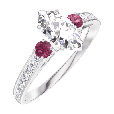 « L'ATELIER » Nº162948Anello Oro bianco 9 carati - Diamante Marchesa 0.5 Carati - Pietre laterali Rubino - Incastonatura Diamante