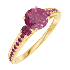 Anello Oro giallo 9 carati - Rubino Rotonda 0.5 Carati - Pietre laterali Rubino - Incastonatura Rubino