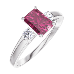 Anello Oro bianco 18 carati - Rubino Rettangolo 0.5 Carati - Pietre laterali Diamante