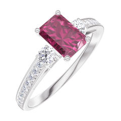 « L'ATELIER » N. 163227Anello Oro bianco 18 carati - Rubino Rettangolo 0.5 Carati - Pietre laterali Diamante - Incastonatura Diamante