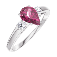 Anello Oro bianco 9 carati - Rubino Goccia 0.5 Carati - Pietre laterali Diamante