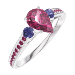 Anello Oro bianco 18 carati - Rubino Goccia 0.5 Carati - Pietre laterali Zaffiro blu - Incastonatura Rubino