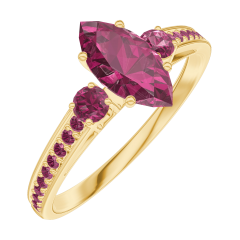 Anello Oro giallo 18 carati - Rubino Marchesa 0.5 Carati - Pietre laterali Rubino - Incastonatura Rubino