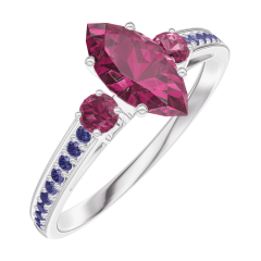 Anello Oro bianco 18 carati - Rubino Marchesa 0.5 Carati - Pietre laterali Rubino - Incastonatura Zaffiro blu