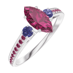 Anello Oro bianco 18 carati - Rubino Marchesa 0.5 Carati - Pietre laterali Zaffiro blu - Incastonatura Rubino