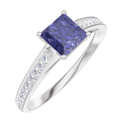 « L'ATELIER » Nº163707Anello Oro bianco 18 carati - Zaffiro blu Principessa 0.5 Carati - Incastonatura Diamante