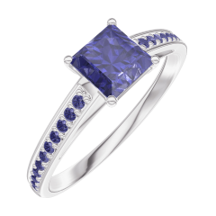 Anello Oro bianco 9 carati - Zaffiro blu Principessa 0.5 Carati - Incastonatura Zaffiro blu