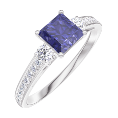 Anello Oro bianco 18 carati - Zaffiro blu Principessa 0.5 Carati - Pietre laterali Diamante - Incastonatura Diamante