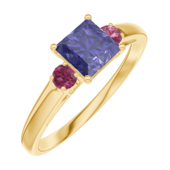 Anello Oro giallo 18 carati - Zaffiro blu Principessa 0.5 Carati - Pietre laterali Rubino