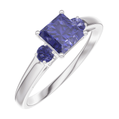 Anello Oro bianco 18 carati - Zaffiro blu Principessa 0.5 Carati - Pietre laterali Zaffiro blu