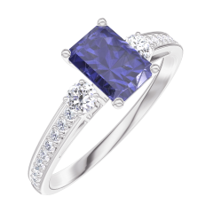 Anello Oro bianco 18 carati - Zaffiro blu Rettangolo 0.5 Carati - Pietre laterali Diamante - Incastonatura Diamante
