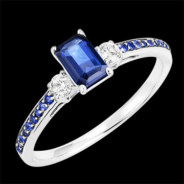 « L'ATELIER » N. 163836Anello Oro bianco 9 carati - Zaffiro blu Rettangolo 0.5 Carati - Pietre laterali Diamante - Incastonatura Zaffiro blu