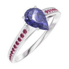 Anello Oro bianco 9 carati - Zaffiro blu Goccia 0.5 Carati - Incastonatura Rubino