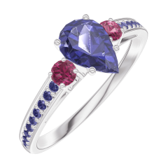 Anello Oro bianco 18 carati - Zaffiro blu Goccia 0.5 Carati - Pietre laterali Rubino - Incastonatura Zaffiro blu