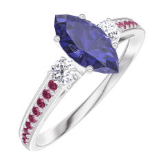Anello Oro bianco 9 carati - Zaffiro blu Marchesa 0.5 Carati - Pietre laterali Diamante - Incastonatura Rubino
