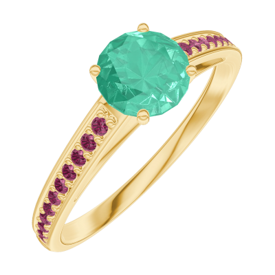 « L'ATELIER » Nº164209Anello Oro giallo 18 carati - Smeraldo Rotonda 0.5 Carati - Incastonatura Rubino 4.8