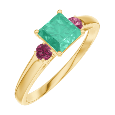 « L'ATELIER » Nº164341Anello Oro giallo 18 carati - Smeraldo Principessa 0.5 Carati - Pietre laterali Rubino