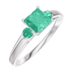 Anello Oro bianco 18 carati - Smeraldo Principessa 0.5 Carati - Pietre laterali Smeraldo