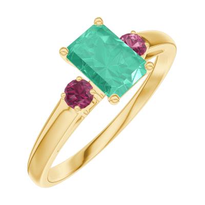 « L'ATELIER » Nº164442Anello Oro giallo 9 carati - Smeraldo Rettangolo 0.5 Carati - Pietre laterali Rubino
