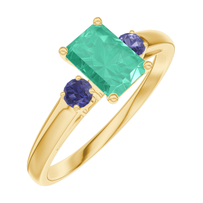 « L'ATELIER » Nº164462Anello Oro giallo 9 carati - Smeraldo Rettangolo 0.5 Carati - Pietre laterali Zaffiro blu