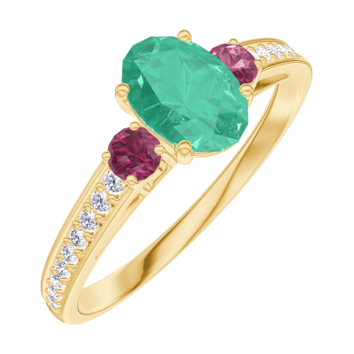 « L'ATELIER » Nº164545Anello Oro giallo 18 carati - Smeraldo Ovale 0.5 Carati - Pietre laterali Rubino - Incastonatura Diamante