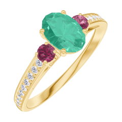 Anello Oro giallo 18 carati - Smeraldo Ovale 0.5 Carati - Pietre laterali Rubino - Incastonatura Diamante