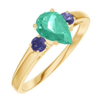 « L'ATELIER » Nº164661Anello Oro giallo 18 carati - Smeraldo Goccia 0.5 Carati - Pietre laterali Zaffiro blu