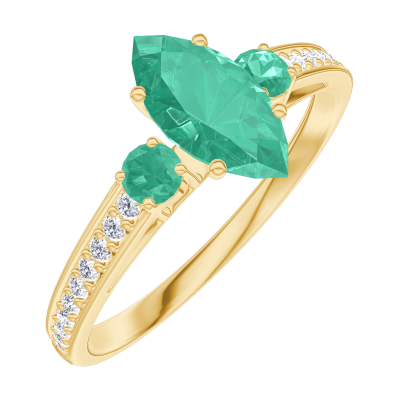 « L'ATELIER » N. 164786Anello Oro giallo 9 carati - Smeraldo Marchesa 0.5 Carati - Pietre laterali Smeraldo - Incastonatura Diamante
