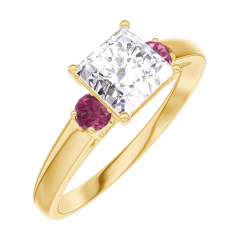 Anello Oro giallo 18 carati - Diamante Principessa 0.7 Carati - Pietre laterali Rubino