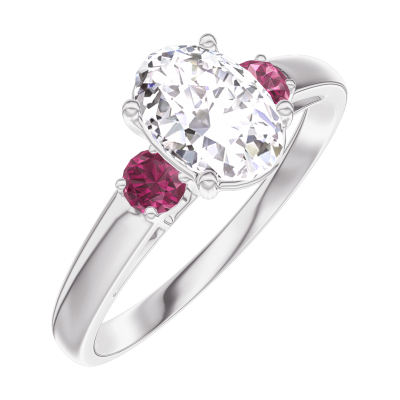 « L'ATELIER » Nº165144Anello Oro bianco 9 carati - Diamante Ovale 0.7 Carati - Pietre laterali Rubino