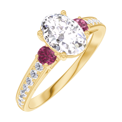 « L'ATELIER » N. 165146Anello Oro giallo 9 carati - Diamante Ovale 0.7 Carati - Pietre laterali Rubino - Incastonatura Diamante