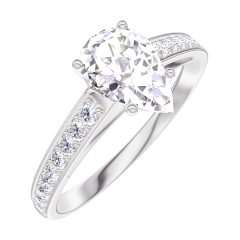 Anello Oro bianco 18 carati - Diamante Goccia 0.7 Carati - Incastonatura Diamante