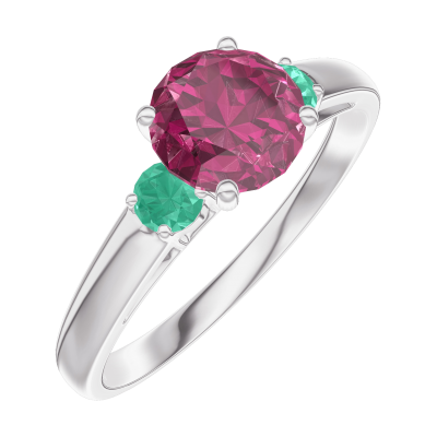 « L'ATELIER » N. 165484Anello Oro bianco 9 carati - Rubino Rotonda 0.7 Carati - Pietre laterali Smeraldo 5