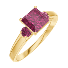 Anello Oro giallo 18 carati - Rubino Principessa 0.7 Carati - Pietre laterali Rubino