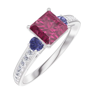 « L'ATELIER » Nº165567Anello Oro bianco 18 carati - Rubino Principessa 0.7 Carati - Pietre laterali Zaffiro blu - Incastonatura Diamante