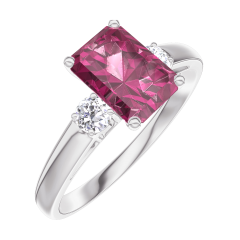 Anello Oro bianco 9 carati - Rubino Rettangolo 0.7 Carati - Pietre laterali Diamante