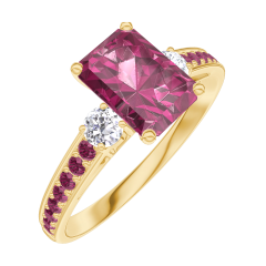 Anello Oro giallo 18 carati - Rubino Rettangolo 0.7 Carati - Pietre laterali Diamante - Incastonatura Rubino