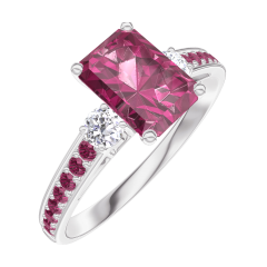 Anello Oro bianco 18 carati - Rubino Rettangolo 0.7 Carati - Pietre laterali Diamante - Incastonatura Rubino