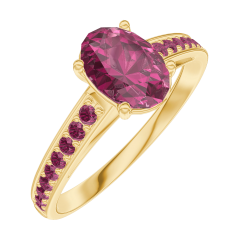 Anello Oro giallo 9 carati - Rubino Ovale 0.7 Carati - Incastonatura Rubino