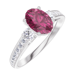 Anello Oro bianco 18 carati - Rubino Ovale 0.7 Carati - Pietre laterali Diamante - Incastonatura Diamante