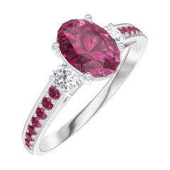 Anello Oro bianco 9 carati - Rubino Ovale 0.7 Carati - Pietre laterali Diamante - Incastonatura Rubino