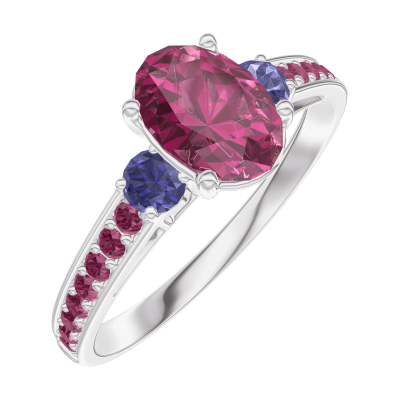 « L'ATELIER » Nº165771Anello Oro bianco 18 carati - Rubino Ovale 0.7 Carati - Pietre laterali Zaffiro blu - Incastonatura Rubino