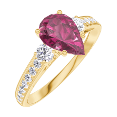 Anello Oro giallo 18 carati - Rubino Goccia 0.7 Carati - Pietre laterali Diamante - Incastonatura Diamante