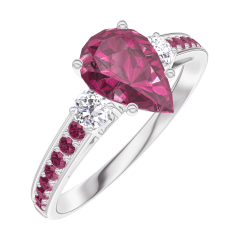 Anello Oro bianco 9 carati - Rubino Goccia 0.7 Carati - Pietre laterali Diamante - Incastonatura Rubino