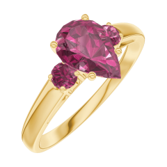 Anello Oro giallo 18 carati - Rubino Goccia 0.7 Carati - Pietre laterali Rubino